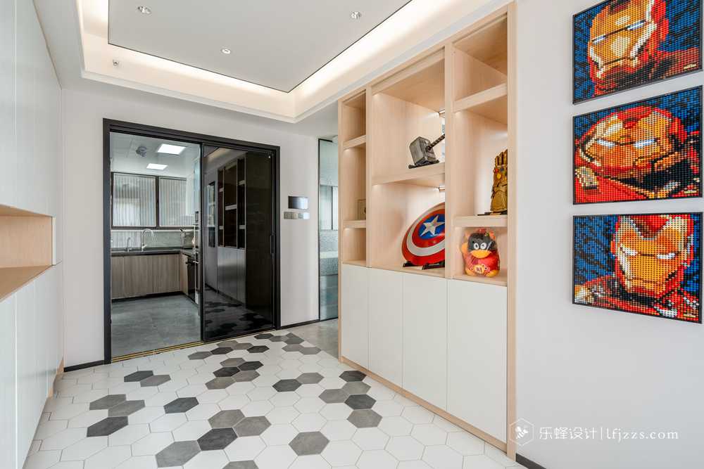 色彩簡約,空間以白色為主基調,摒棄傳統(tǒng)的吊燈,使用點光源的筒燈,使燈光更有層次感,整個空間的燈光也更柔和。再搭配墻磚的質感和高純度色彩,來引入一種時尚感。