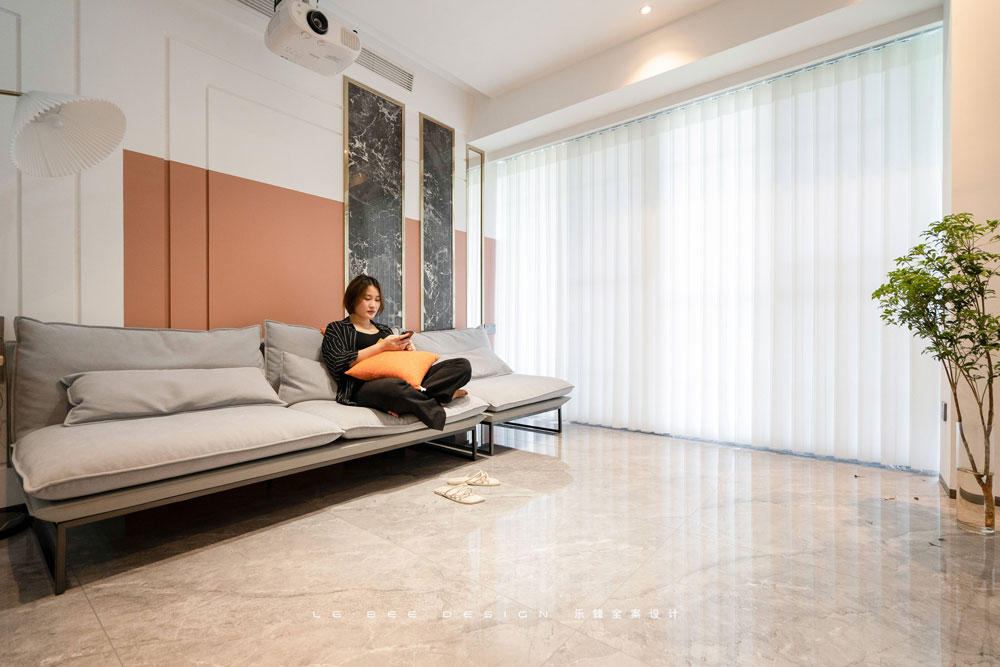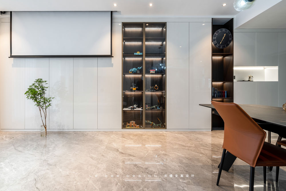 客廳的收納柜還有另一個(gè)優(yōu)勢,在柜子的設(shè)計(jì)上再也不用考慮電視的位置啦,這樣整個(gè)柜體更加簡潔,采用到投影進(jìn)行觀影,在尺寸上比傳統(tǒng)的電視機(jī)要大,收放自如的幕布相比于電視機(jī)無時(shí)無刻不在提升著家里的氣質(zhì)。