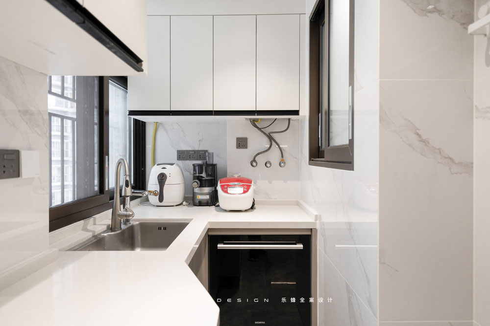 L型的櫥柜在布局的時(shí)候充分考慮到動(dòng)線的流暢,通過優(yōu)化櫥柜的寬度避開了煙道所在的突出位置,在使用方面更個(gè)性化的定制了多種廚房家電,大大減少了廚房烹飪和家務(wù)的勞動(dòng)量。