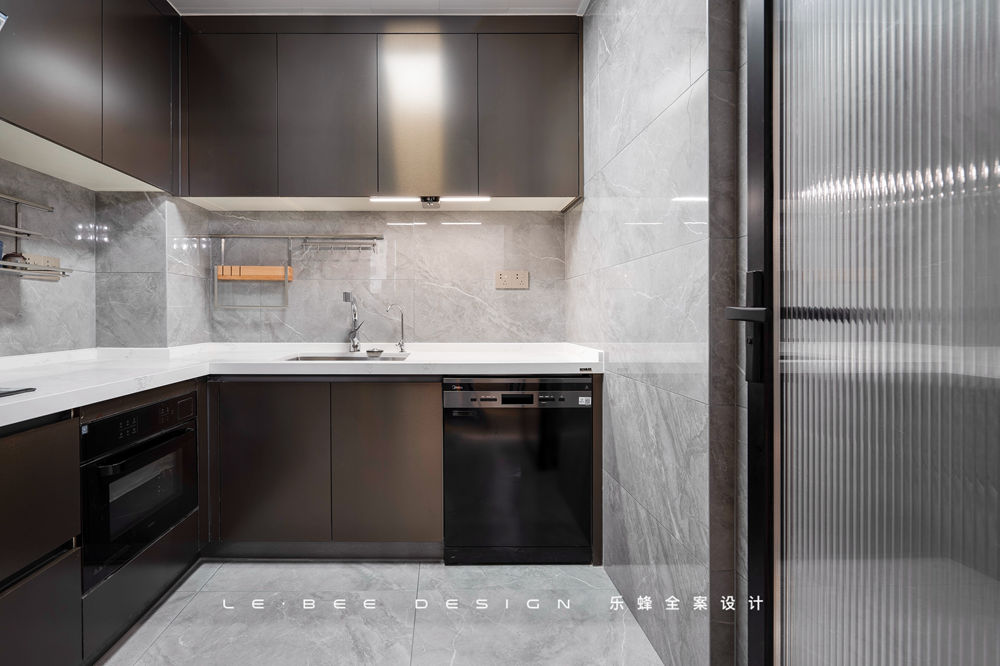 L字型空間布局,擴(kuò)大廚房利用面積后,廚房操作能滿足多人同時(shí)使用。超晶板是櫥柜最高級(jí)的材質(zhì)之一,對(duì)于廚房的光線能夠進(jìn)行溫和地反射,材質(zhì)紋理細(xì)膩到無可挑剔。