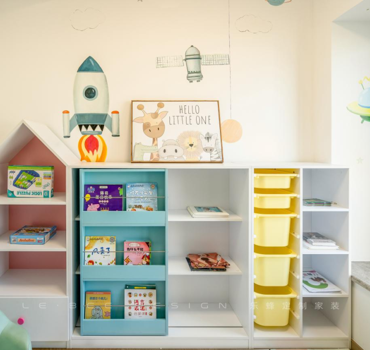 房間內(nèi)設(shè)計(jì)一組收納柜,孩子的玩具和書籍讀物都能收納在此處,規(guī)整的收納空間也能夠培養(yǎng)孩子的收納能力。