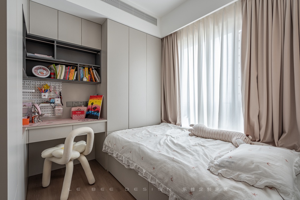 本案業(yè)主在交房之前就和我們?nèi)〉寐?lián)系,在交房后我們第一時間和業(yè)主溝通,于是設(shè)計、制作方案一氣呵成。業(yè)主對我們的設(shè)計效果很滿意,于是簽訂了合同。業(yè)主注重收納,我們在主臥和兒童房根據(jù)業(yè)主的需求特地設(shè)計了大容量的收納,其他空間也根據(jù)業(yè)主的需求進(jìn)行了適當(dāng)調(diào)整和改動。