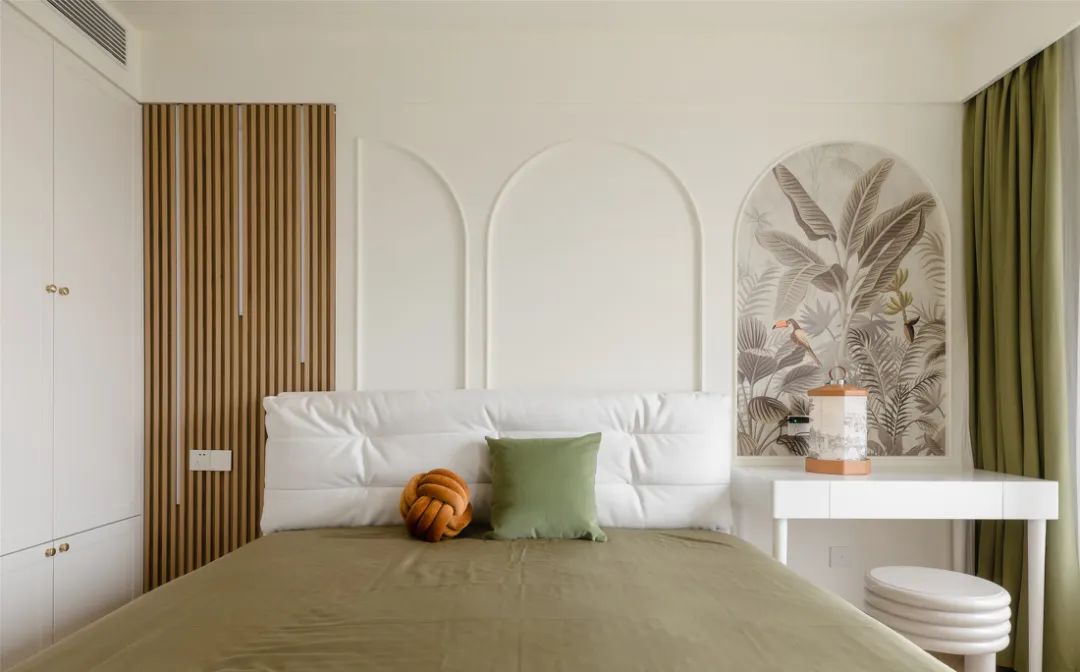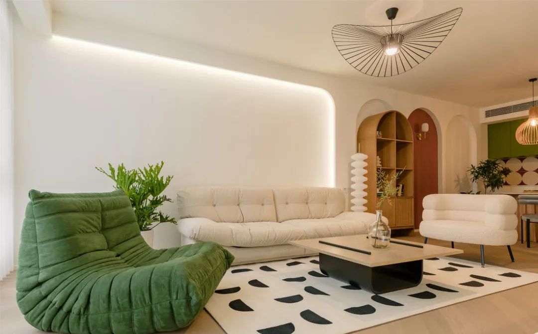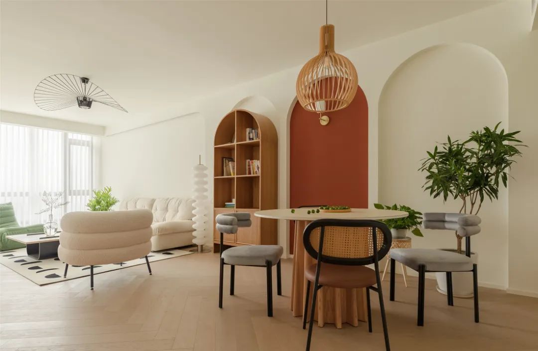 本案屋主是從事互聯(lián)網(wǎng)工作的80后小姐姐,喜歡閱讀,樂于分享生活是她給自己的標簽。這套兩居室的老房子,大多時候是她一個人的獨處空間,父母只是偶來小住,因此整屋的改造,會更聚焦屋主本身的需求。老房承重墻居多,限制了大規(guī)模的拆改,我們僅對狹長的廚房、隱私感欠缺的臥室,進行了修正,消除空間的消極感,讓公共空間保持開闊寬敞,休息區(qū)則私密安靜。在整屋風格的定位上,我們尊重屋主的喜好,融入藤編、花磚、拱門等具有鮮明南洋風格的設(shè)計元素,同時借借助肌理感的藝術(shù)涂料,引入侘寂風的質(zhì)樸感,下面我們一起走進這個簡約生動,又充滿異域風情的小家吧!