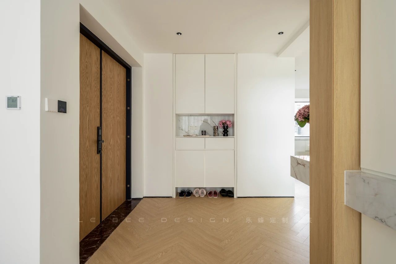 入戶玄關(guān)簡(jiǎn)約而溫馨,景端設(shè)計(jì)讓人一見(jiàn)之下便被綠植所吸引,仿佛清新的大自然近在眼前。原木與大理石的完美搭配營(yíng)造出獨(dú)特的藝術(shù)氛圍,同時(shí)也增強(qiáng)了私密性。懸空設(shè)計(jì)的鞋帽柜不僅方便清潔,還能方便更換鞋履。原木的隔斷延伸至兩旁的大理石懸浮臺(tái)面,衍生出米白色的收納酒柜。長(zhǎng)虹玻璃門(mén)設(shè)計(jì)既實(shí)現(xiàn)了收納酒品的功能,又使整個(gè)空間更加豐富多彩,避免了單調(diào)。創(chuàng)造一個(gè)深邃靜謐的茶室空間,將自然之美與人文情懷巧妙融合,呈現(xiàn)出一場(chǎng)內(nèi)心深處的靜心之旅。以白色調(diào)為底色,仿若潔白的畫(huà)布,原木色則勾勒出歲月的痕跡,展現(xiàn)出大自然的生命力與歲月的沉淀。木制茶臺(tái)的線條簡(jiǎn)潔流暢,原木紋理的展示如詩(shī)如畫(huà),營(yíng)造出恰到好處的雅致氛圍。燈光的設(shè)計(jì)如同一場(chǎng)視覺(jué)的舞蹈,與自然光線交相輝映,打造出恰到好處的溫馨與舒適。茶室不僅是品茶的場(chǎng)所,更是心靈的驛站。我們希望通過(guò)設(shè)計(jì),營(yíng)造出一個(gè)遠(yuǎn)離喧囂的靜謐之境,讓人們?cè)谶@里找到內(nèi)心的平靜與安寧,感受到生活中最純粹的美好。