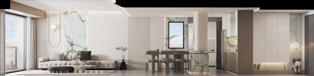 空間格調以現代、輕奢、優(yōu)雅時尚混搭~采用沉穩(wěn)的色調渲染每一堵墻壁,巧妙的拿捏心住戶心緒,以此營造新的動感空間。以簡潔的線條、塊面的疊落來演繹空間構成關系,著墨于光影與構景的詮釋,運用不同材質的碰撞蝶,強調細膩的變化對比,營造經典的合院豪宅。 細膩的紋理石材鋪陳瑰麗山,與金屬交織出細致的層次秩序,精致簡潔的語匯給人品質感的升華。將現代時尚與線條相結合,遵循化繁為簡,兩層挑空墻面