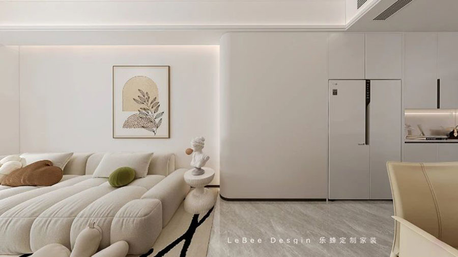 屋主是一對年輕夫婦,目前房子是屋主兩人一同居住,考慮到后面可能需要父母過來幫忙帶小孩,故保留了三個房間。設(shè)計師以女主性格和兩人追求生活的方式作為風(fēng)格的出發(fā)點,全屋是溫暖溫馨的現(xiàn)代簡約風(fēng),也是以此創(chuàng)造出最純粹,最干凈,最愜意的生活場景,以溫柔的奶咖色為主基調(diào),采用淺色的背景墻,搭配淺色系家具,配以富有質(zhì)感的軟裝飾品,通過簡約的設(shè)計美學(xué),將高品質(zhì)的生活體驗由內(nèi)而外地帶給屋主夫婦兩人。