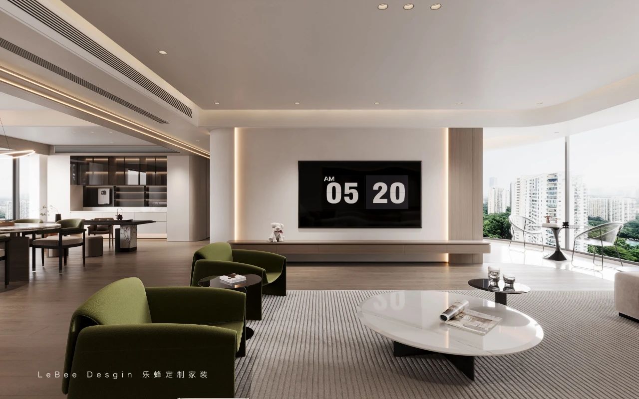 在深圳【天鵝堡】有怎么一套240㎡的大平層,意式輕奢風(fēng)格的設(shè)計(jì),在這個(gè)小區(qū)脫穎而出,又有哪些設(shè)計(jì)小巧思呢?讓我們來看一下吧~ 本案基于業(yè)主對精致生活品質(zhì)的追求,其熱愛品茶與美食,故而在設(shè)計(jì)風(fēng)格上選定極具高級感與視覺感的意式輕奢風(fēng),并采用暖色系。 旨在營造出大氣、穩(wěn)重、通透且極具品質(zhì)的空間氛圍,以滿足業(yè)主對于生活環(huán)境的精致需求,讓整個(gè)空間在暖色系的烘托下,盡顯溫馨與優(yōu)雅,使業(yè)主能在其中盡情享受品茶、美食的愜意時(shí)光,充分感受生活的美好與精致。