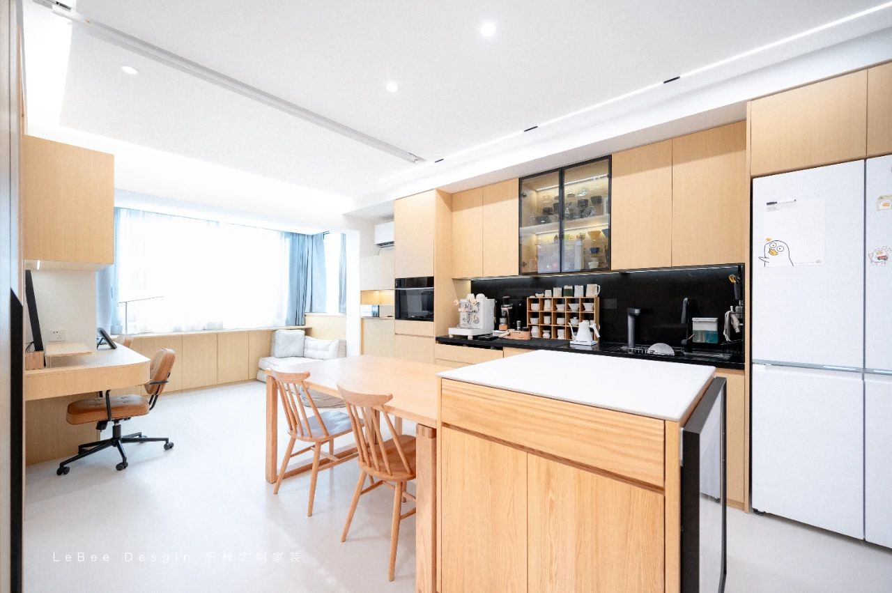 本案為兩夫妻專屬設(shè)計(jì),原木風(fēng)盡顯溫馨。整體設(shè)計(jì)重收納,原木柜門與奶油風(fēng)融合,氛圍溫暖清新。 材質(zhì)上多用天然木材如橡木、松木、胡桃木等,搭配棉麻、藤編,體現(xiàn)自然純粹與溫馨觸感。 色彩以暖調(diào)原木色如淺木色、米黃色、淡褐色為主,搭配白色、米色、淺灰色等中性色,可點(diǎn)綴綠植色和少量深咖色、黑色,營造溫暖舒適寧靜氛圍,增強(qiáng)空間明亮層次感,更具質(zhì)感韻味。
