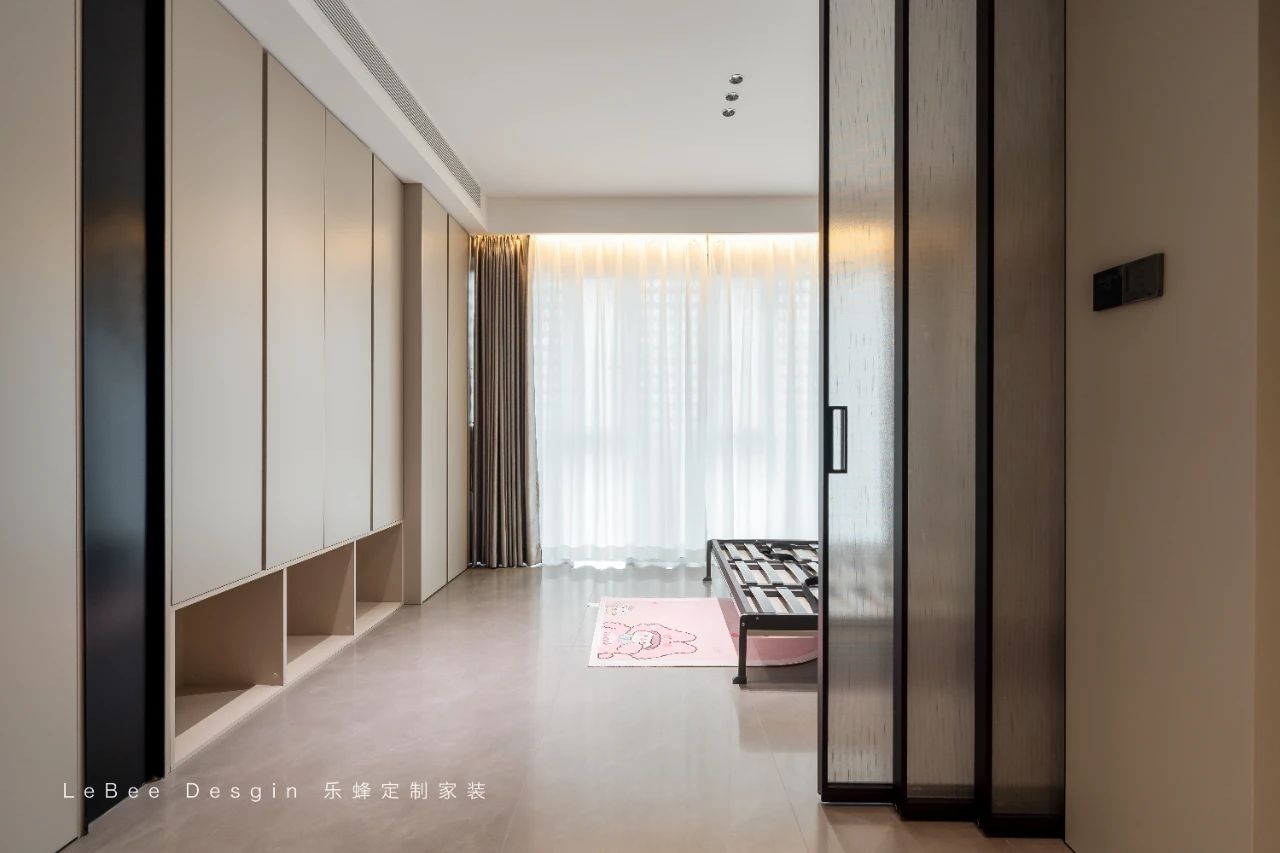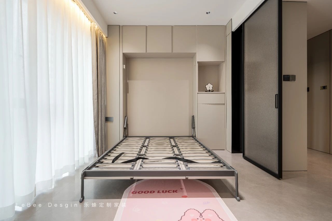 當(dāng)有需要時(shí),這個(gè)空間還能迅速變身為兒童房,提前配置好的收納設(shè)施可以輕松容納兒童用品,鋪上柔軟的床墊,就能為孩子提供一個(gè)溫馨的睡眠角落,充分展現(xiàn)了空間的多功能性。