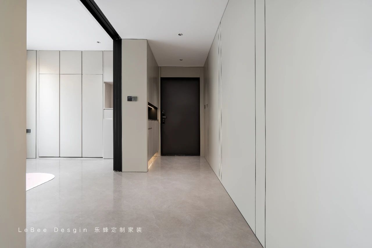 一踏入家門,映入眼簾的是一個(gè)巧妙設(shè)計(jì)的入戶休閑區(qū)。這里擺放著舒適的懶人沙發(fā)和小巧的茶幾,閑暇時(shí)光,主人可以坐在這里閱讀、喝茶,享受片刻的寧?kù)o。