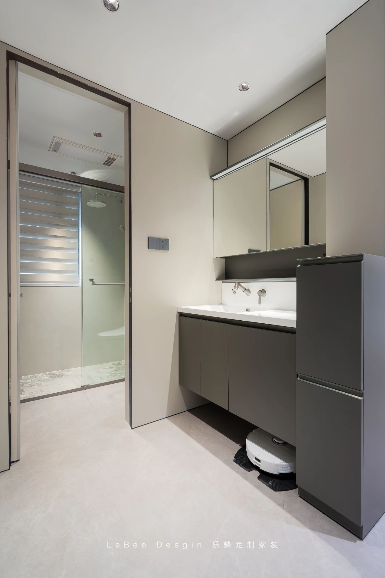 衛(wèi)生間則采用了干濕分離的設(shè)計(jì)。干區(qū)與濕區(qū)通過玻璃隔斷清晰劃分,有效保持了空間的干燥與整潔。