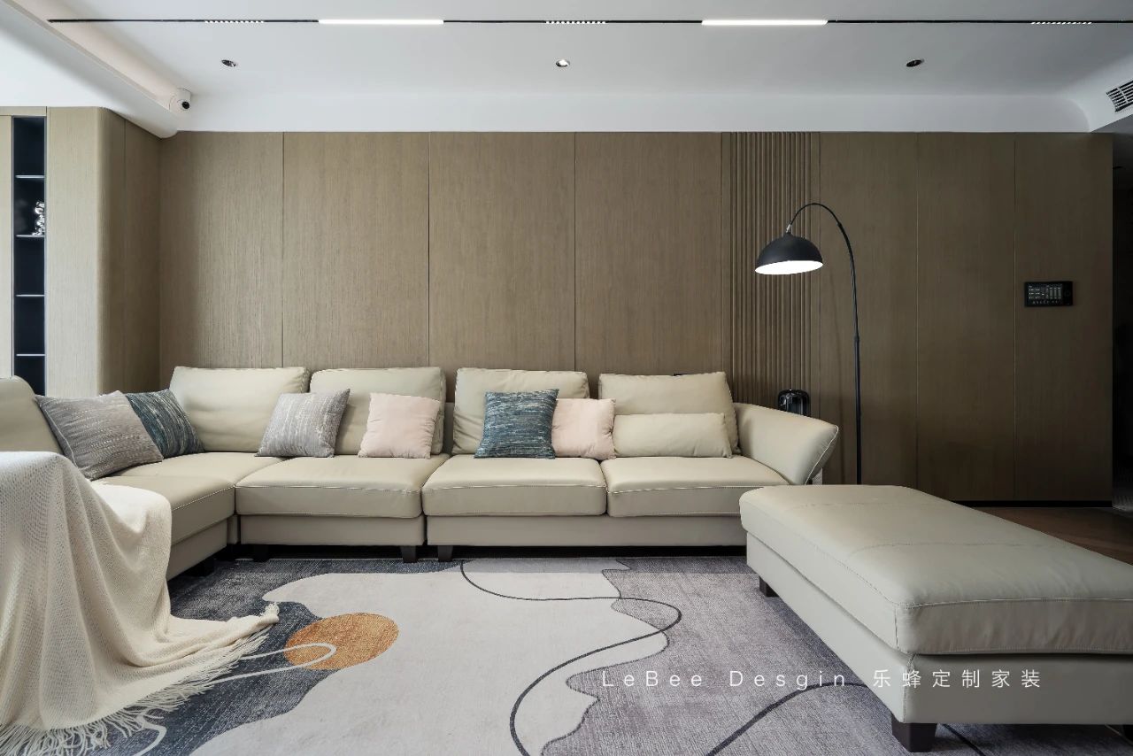 沙發(fā)背景墻則是木飾面、巖板與裝飾條的完美搭配,高級感的家,硬裝絕對不能馬虎!