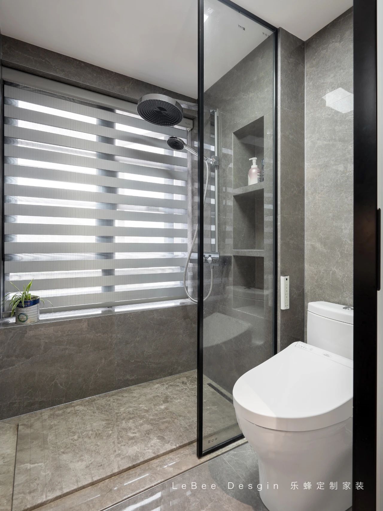 衛(wèi)生間做的二分離設(shè)計,玻璃門隔斷洗漱區(qū)和淋浴區(qū),也能很好的滿足業(yè)主的日常洗漱需求。