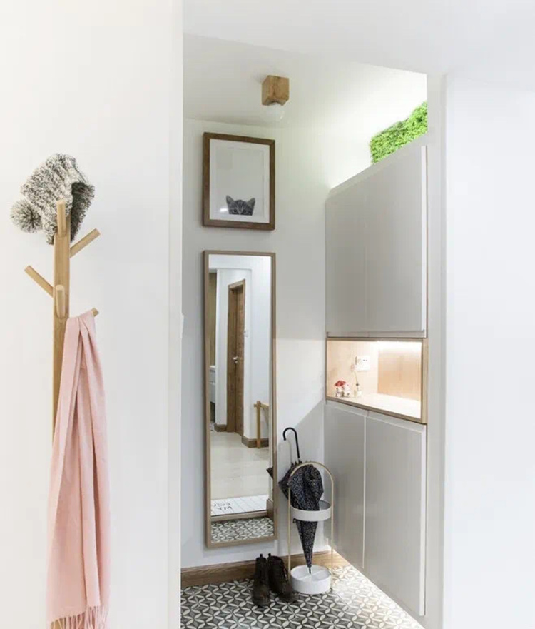 鞋柜、斗柜、鏡子三大標配齊活!大宅的可以考慮設(shè)計藝術(shù)一些的玄關(guān)。(這篇先不做重點講解~)