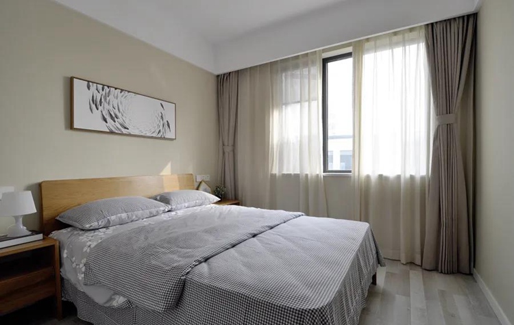 主臥與次臥均以莫蘭迪色系為主色調(diào),沉穩(wěn)幽靜,打造收納柜方便儲物。